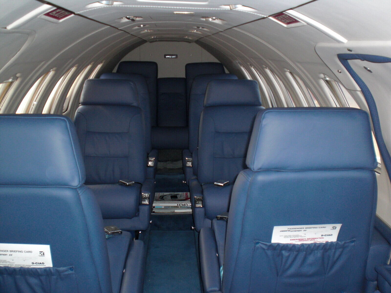 | 内部 | The aircraft has a luxury interior with Blue leather seats. Blue wool carpeting and white leather headliners.