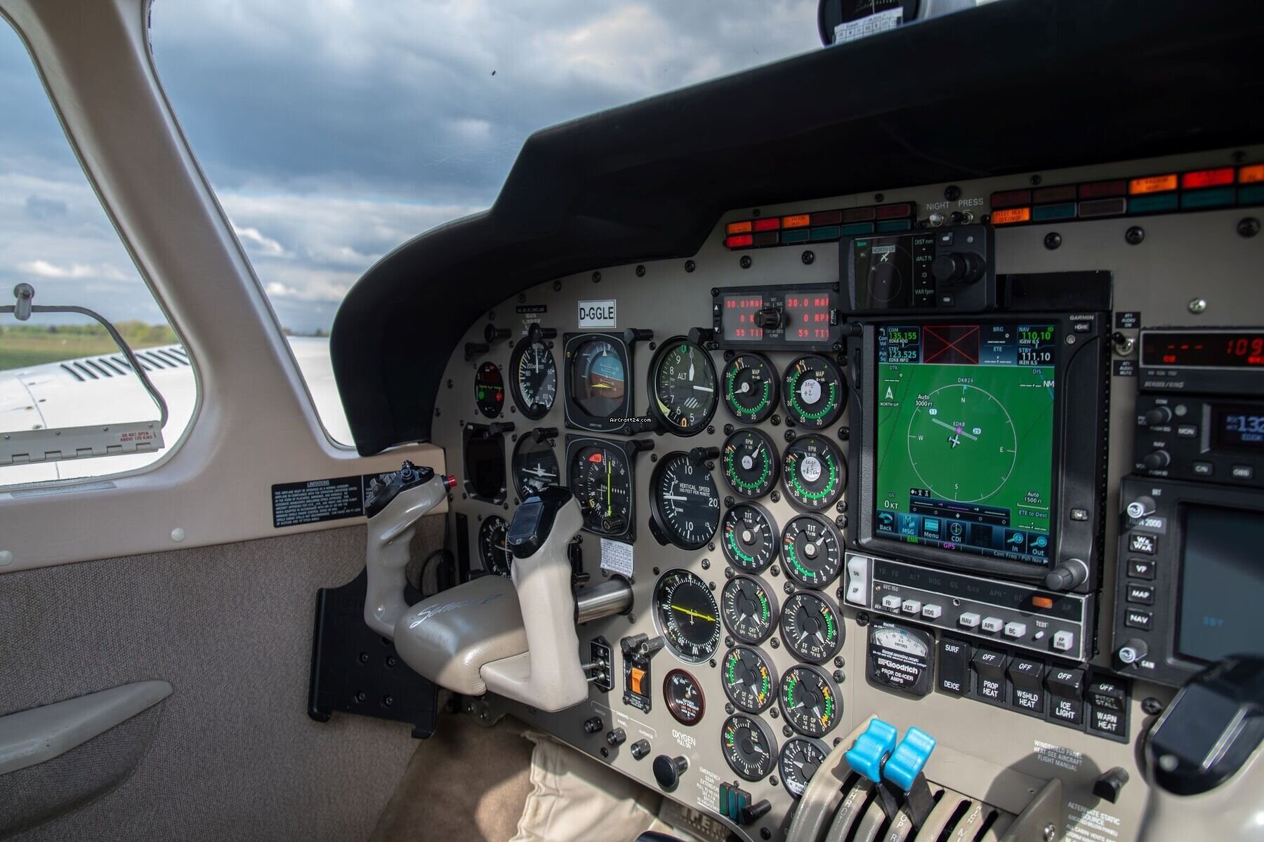 Inside, the cabin is designed for the high-end traveler, featuring a classic Bright Beige interior in a spacious club-seating configuration. Passengers can travel in total comfort regardless of the outside temperature thanks to the rare luxury of factory Air Conditioning, while the integrated entertainment center and individual reading lights ensure every journey is as relaxing as it is productive. For the pilot, this aircraft is a highly capable all-weather platform, fully FIKI certified and with supplemental oxygen. The flight deck is a masterclass in modern avionics, headlined by the Garmin GTN 750 and supported by a King KFC 150 Autopilot with GPSS Roll Steering, offering a turnkey solution for those who refuse to compromise on safety or luxury.